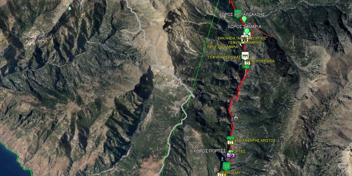 GPS signal is available when accessing the Forest, before entering the gorge. Inside the gorge there is no GPS signal coverage from a smart phone device (Trimble and Garmin devices have but we were investigating the case of ordinary visitors having smartphones), not to neglect no telephone and no internet access. The GPS signal returns just before the gorge exit in “Agya Roumeli”.